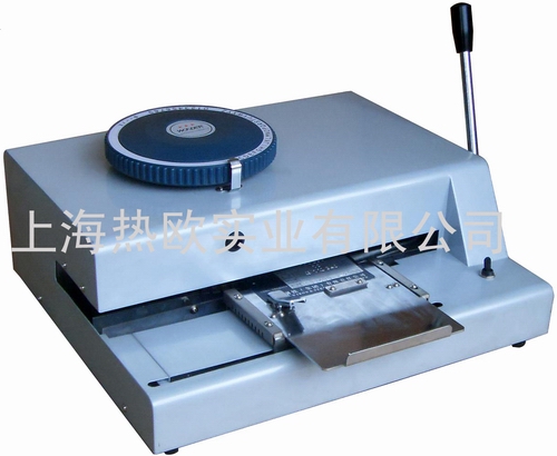 【X5工作原理】1. 經高頻淬火熱處理的合金鋼(gang)轉字盤在外(wai)力作用下(xia)(用手控制壓(ya)力手柄),在金屬標牌上刻(ke)印出有一定深度(0.1~0.3mm深)的凸字效果(guo);