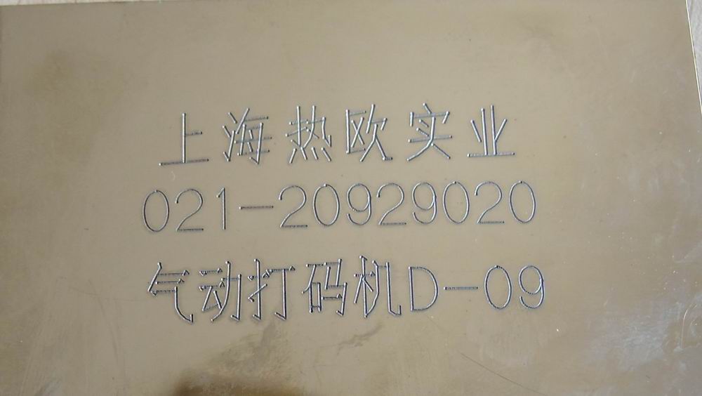 電腦氣動打標機 原理:這種設備的原理是電腦控制氣針打標記,特點是即時輸出、有較大深度,因此特別適合打各種批號等需要經常變動的標識。氣動打標機技術源于歐洲,早期是由法國公司引入國內,但由于價格和售后服務的問題,目前還是由國產品牌占主導地位;氣動打標機其實要求生產商具有非常專業的數控設計力量,而一些生產商由于急功近利,采用了根本未經充分檢驗論證的數控系統,因此目前國產氣動打標機產品質量問題比較突出,一旦售后服務跟不上(這種設備重量體積都較大),經常使客戶叫苦不迭。上海熱歐公司自行研發的D系列氣動打標機,采用比較先進的數控系統,關鍵部件堅持采用了成本較高的進口配件, 熱歐產品成功地應用于許多國內汽車生產流水線上,經受了嚴苛的考驗。